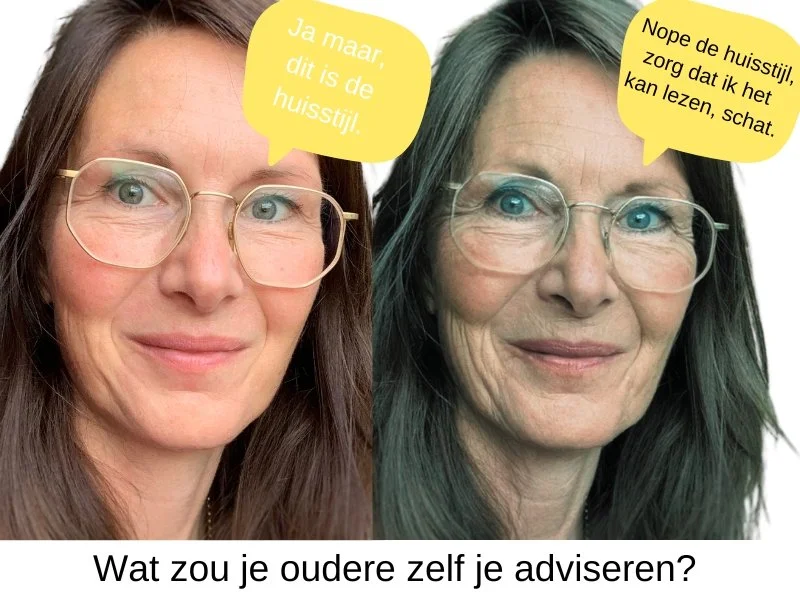 Van je oudere donateurs moet je het hebben. Zij geven meer aan goede doelen dan jongeren en ze blijven langer trouw aan je organisatie. Als je huisstijl voor déze groep niet leesbaar is, dan is hij niet goed. Rebelleer, verzin iets beters en kom op voor je donateurs. Als jij het niet doet, doet niemand het.